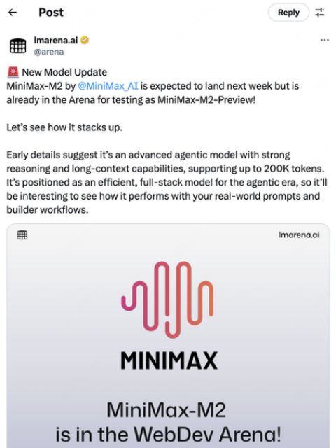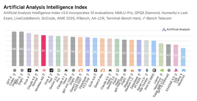 “让每个人都用得起AI,这是我们对AI发展的判断。我们认为AGI一定会实现,并且一定会服务大众、普惠大众。”在过去不久的世界人工智能大会(WAIC)上,MiniMax创始人闫俊杰曾表示,在他看来,中国AI企业正以“高智能、低成本”的新组合,向全球AI格局发起正面冲击。 性能对标国际,成本大幅降低 此次全新发布的M2大模型,进一步降低了大模型的使用成本:其综合成本API(接口)价格定在每百万Token输入0.3美元/2.1元人民币,以及输出1.2美元/8.4元,同时在线上提供TPS(每秒输出Token数)在100左右的推理服务(还在快速提升)。 这也意味着,其综合成本不到OpenAI旗下旗舰大模型GPT-5 (high) 的六分之一,并且不到 Claude 4.5 Sonnet的十分之一(大概为8%)。 在性能方面,MiniMax在代码(Coding)、代理(Agentic)、深度搜索(Deep Search)等多方面进行优化,通过高效的激活参数设计,实现智能、速度与成本的最佳平衡,在全球核心权威榜单上,得分超过谷歌的 Gemini 2.5 Pro、Anthropic 的 Claude 4.1 等最新的 SOTA 模型。过去国产模型多在文本生成上竞争,现在 MiniMax 能在“复杂信息检索与推理”中与 GPT-5、Claude 这类 SOTA 模型并列,说明强化学习(RL)与推理优化的策略,正在奏效。 这标志着,中国开源模型首次在国际通用智能评测体系中达到“第一梯队”水准,真正进入“可与全球顶尖模型竞争”的阶段。 海外科技巨头点赞 中国大模型的日新月异,也深受海外好评。 硅谷科技巨头Meta曾在论文中提到,MiniMax的研究是近期强化学习(RL)突破的代表之一,他们在超过40万小时的实验中,采用MiniMax提出的CISPO损失函数和FP32 Head技术。 这两项技术也是MiniMax在强化学习(RL)阶段中提出的关键创新点,目标是让模型在“大规模训练”中更稳、更准、更具泛化能力,在同等算力下能“跑得更稳、学得更深、用得更顺”。 知名科技评测平台LMarena第一时间在社交媒体上向开发者推荐M2模型测试; Reddit社区技术大V在基准测试中运行了MiniMax M2,“它获得了58.3%的分数,这算是相当不错的表现”。